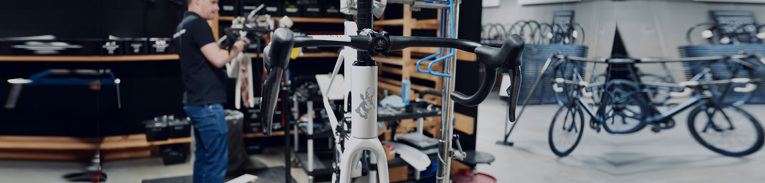 Pronghorn har to komplette topprofessionelle værksteder med superdygtige og erfarne mekanikere. Her samles vores cykler efter alle kunstens regler og med fokus på alle detaljer. Derudover servicerer vi egne cykler samt for- og baggafler. Vi har udelukkende fokus på vores egne racing-cykler og stiller vores mangeårige erfaring til din rådighed. Vores værksteder sikrer alle Pronghorn-ryttere, at deres cykler kører godt og længe.