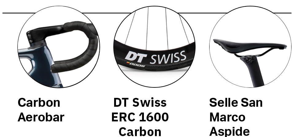 Topramme med high-end carbonhjulsæt og -cockpit. Fuldt integrerede kabler. Top range-grupper.